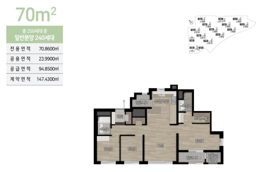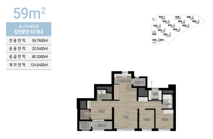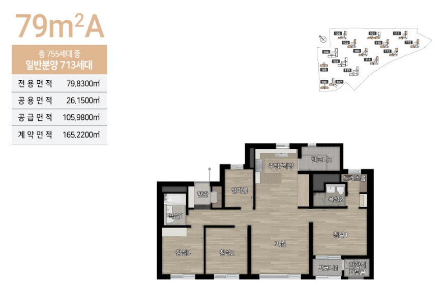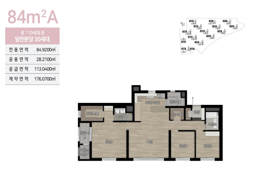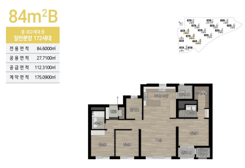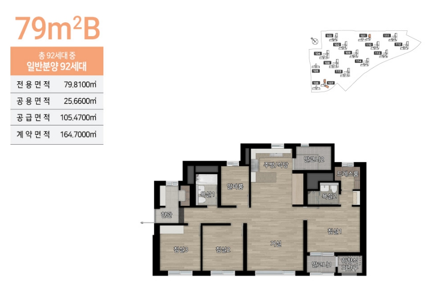 면적 | 105㎡(31평) | 106㎡(32평) | 112㎡(34평) | 92㎡(27평) |