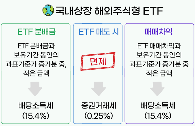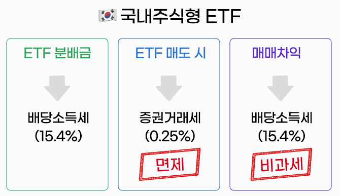 | 국내상장 ETF (주식형) | 면제 | 15.4% | 비과세 | 해당없음 |