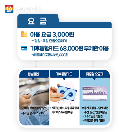 | 요금 | 편도 3,000원(기후동행카드로 무제한 탑승) |