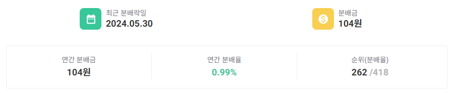 | 연간 분배금(추정) | 1,248원 (월 104원 x 12개월) |