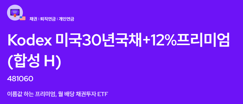 미국의 장기 국채에 투자하면서도 커버드콜 전략을 통해 높은 인컴 수익을 함께 추구하는 Kodex 미국30년국채+12%프리미엄(합성 H) ETF에 대해 살펴보았습니다.